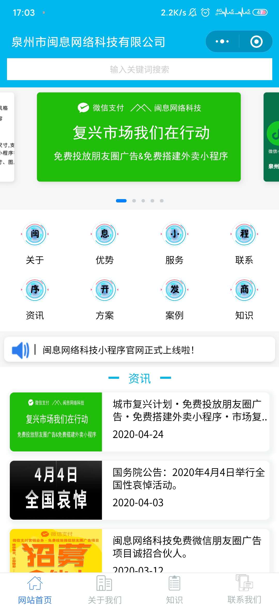 也可以通过各大平台APP搜索【闽息】来查看多端企业官网小程序案例